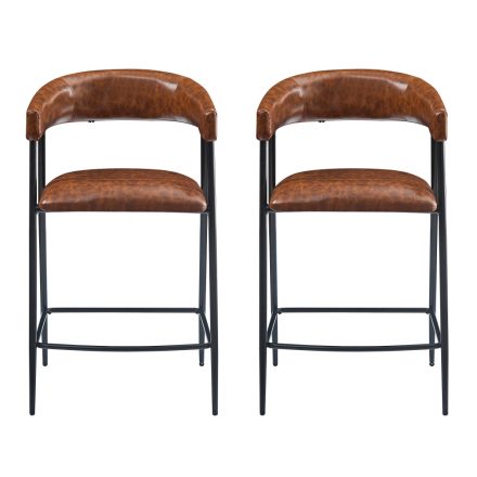 26'' Counter Stools Set of 2, Pu Upholstered Counter Stools with iron Frame, Backrest, Footrest, Arm counter stools for Home Bar, Kitchen Counter, Brown