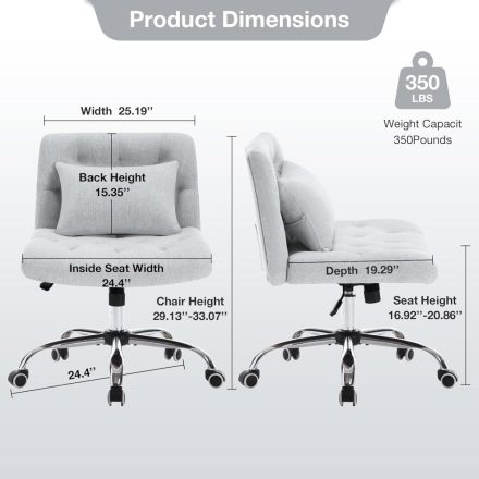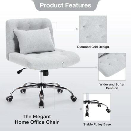 Armless Fabric Office Desk Chair with Wheels, Criss Cross Legged Wide Seat Chair, Modern Home Office Chair with Lumbar Pillow, Comfy Computer Task Chair for Small Space, Vanity Chair for Women, Girls