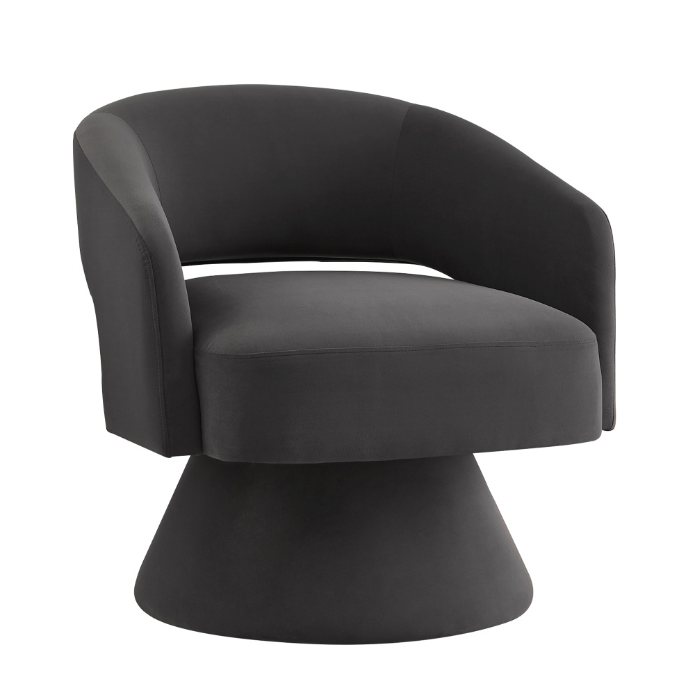 Modern Swivel Barrel Chair, Upholstered Velvet Round Accent Chairs,360 Degree Comfy Swivel Chair with Open Backrest, Single Chair Armchair for Living Room Bedroom, Homerest, Dark Gray